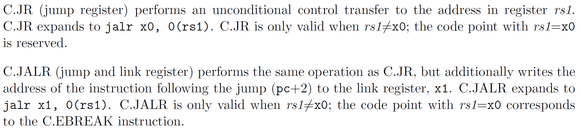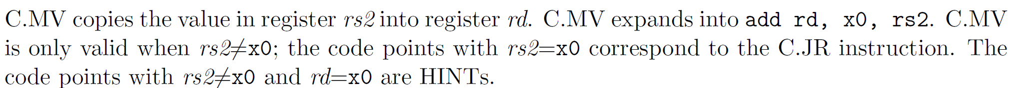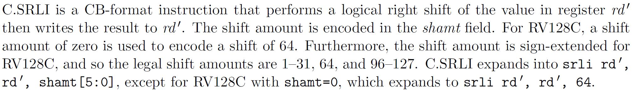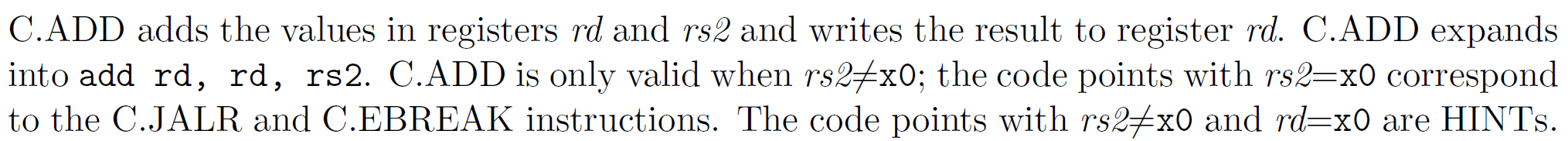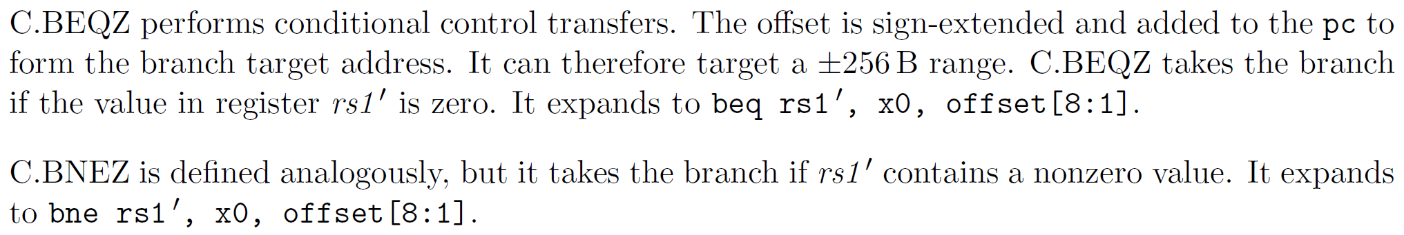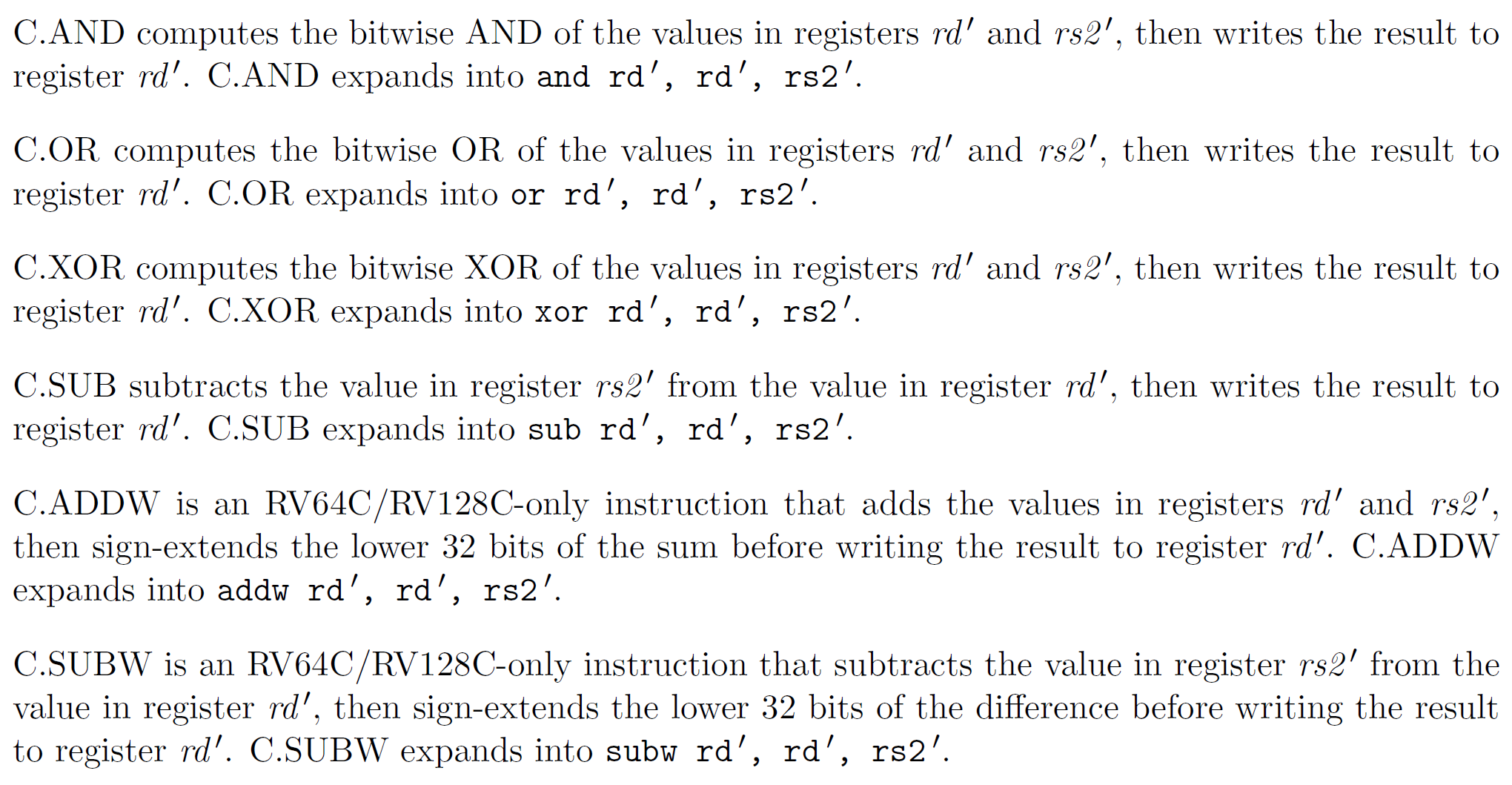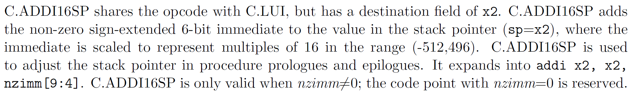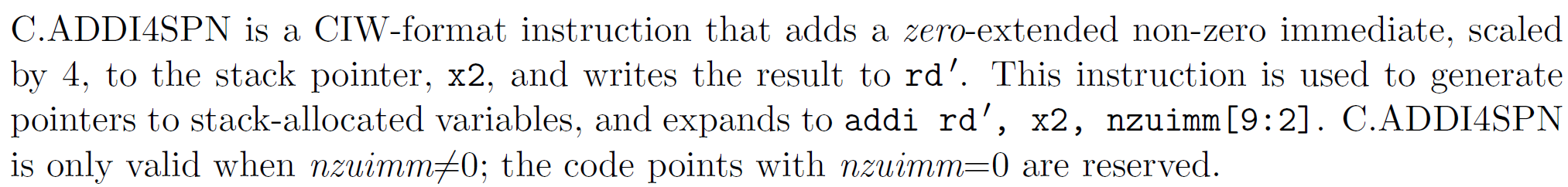 RV64C has several instruction types, and the format is ‘weird’ to say the least. This is mainly to account for the much shorter instruction size.